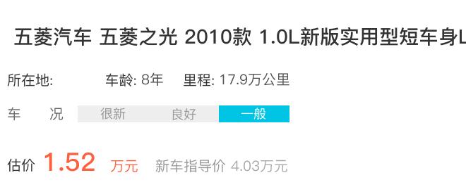 二手車評估師:五菱汽車五菱之光8年車齡能賣多錢?