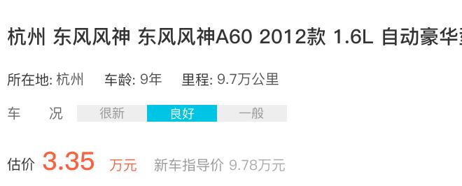 該款車2012年上牌啟用,行駛9.7萬公里,新車指導(dǎo)價(jià)9.78萬元,車況良好的情況下,成交價(jià)1.93萬。
