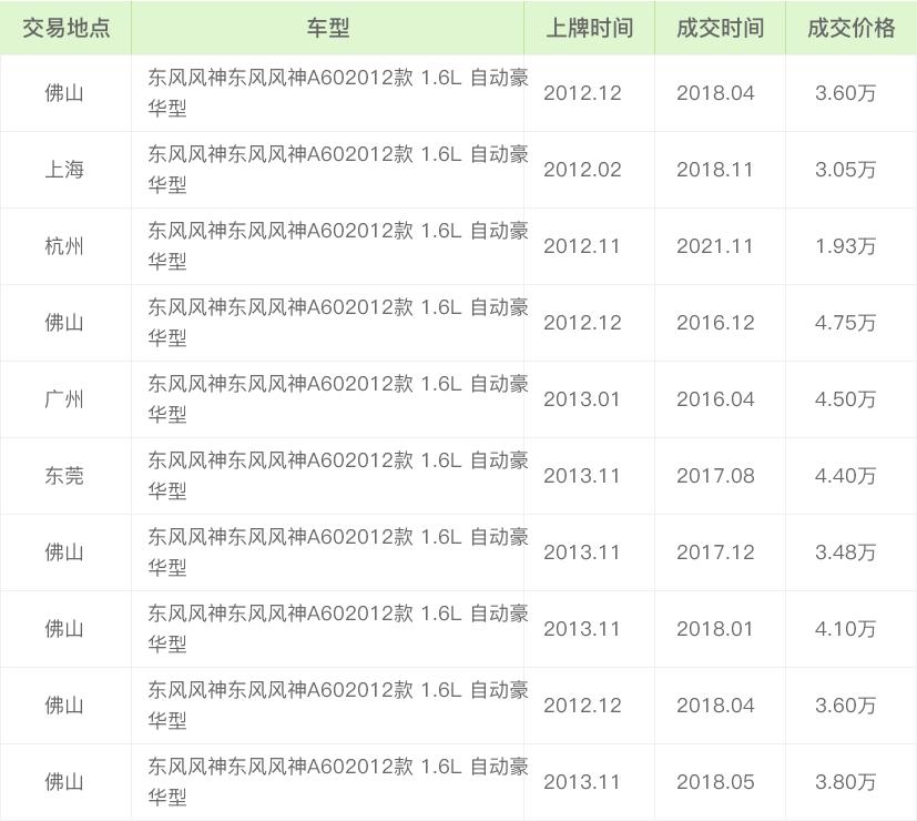 點(diǎn)擊查看東風(fēng)風(fēng)神東風(fēng)風(fēng)神A60的最新歷史成交價(jià) > >